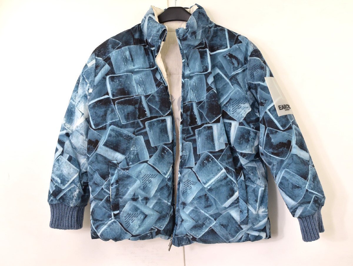 > 5000-XA00037★ARMANI エンポリオ アルマーニ キッズ★北極圏プリント リバーシブル ダウンジャケット 10A/142cm EARCTIC ビックワッペン