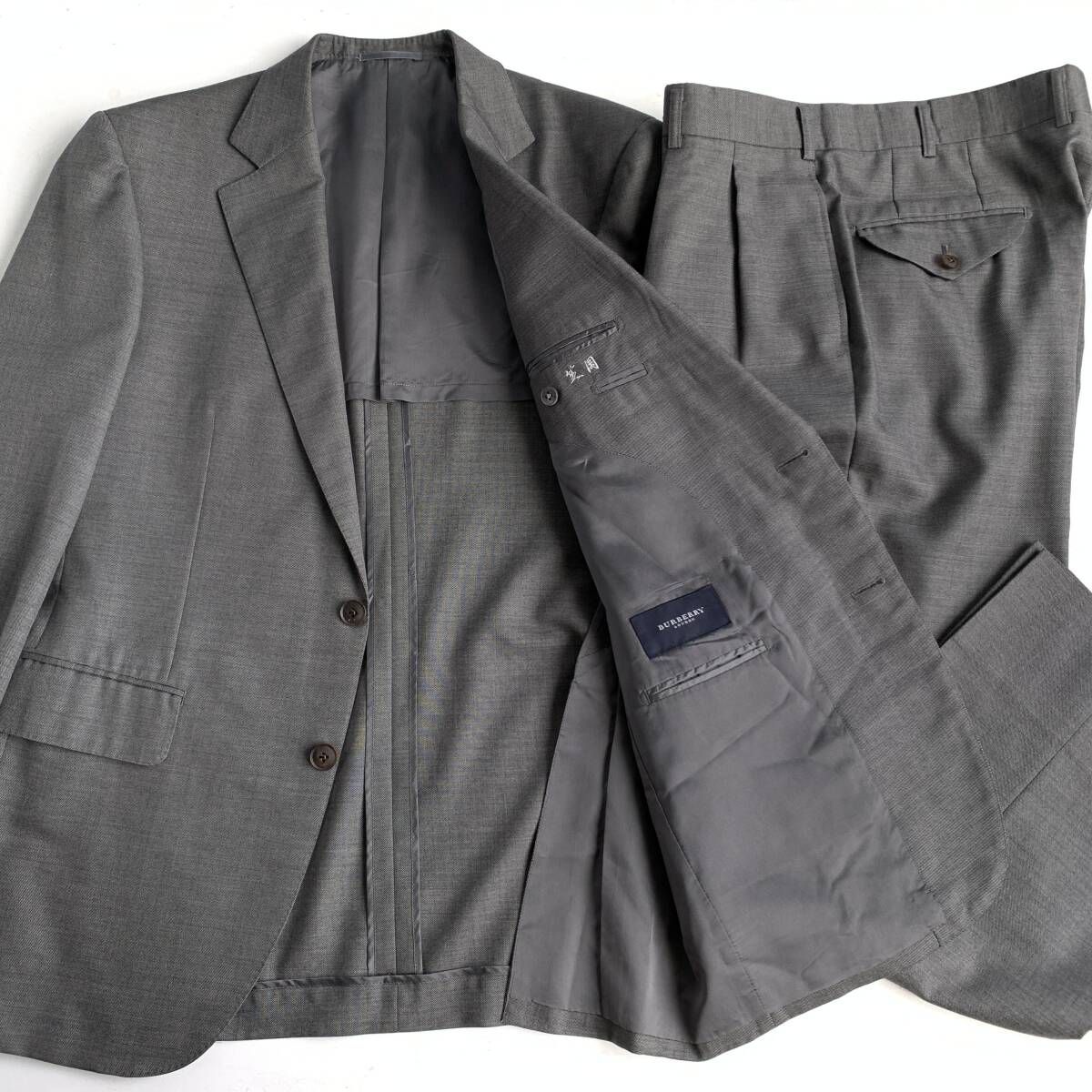 - ☆BURBERRY LONDON バーバリーロンドン 羊毛×絹 2B 背抜き セットアップスーツ 上下 ミディアムグレー サイズAB6【送料一律/同梱可能】J
