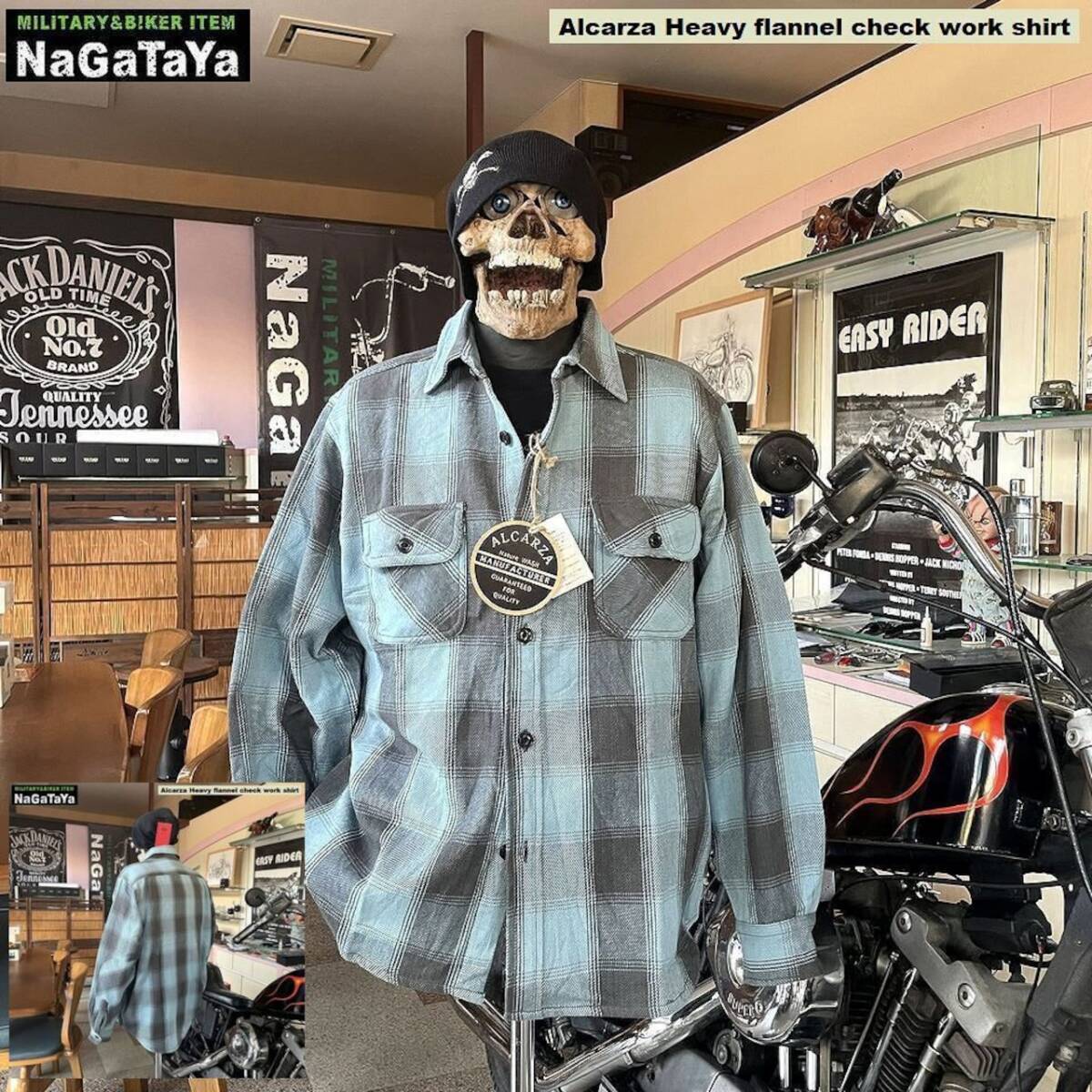 - ALCARZA アルカーザ ヘビーネルチェック ワークシャツ オンブレチェック柄 ブルー Mサイズ アメカジ バイカー ストリート