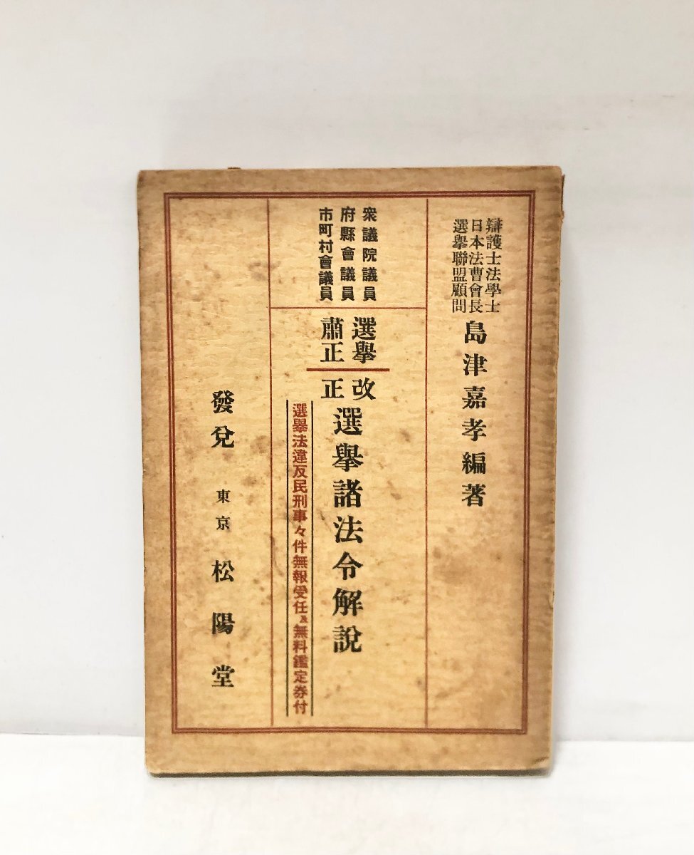 - 選挙粛正改正選挙諸法令解説 島津嘉孝 編、松陽堂、昭和10 246p