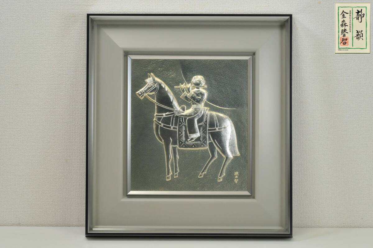 > 【真作】 重要無形文化財 金森映井智 彫金レリーフ 『静韻』 共シール 額装44.5㎝×42㎝ 箱付 金工品 03104048-2