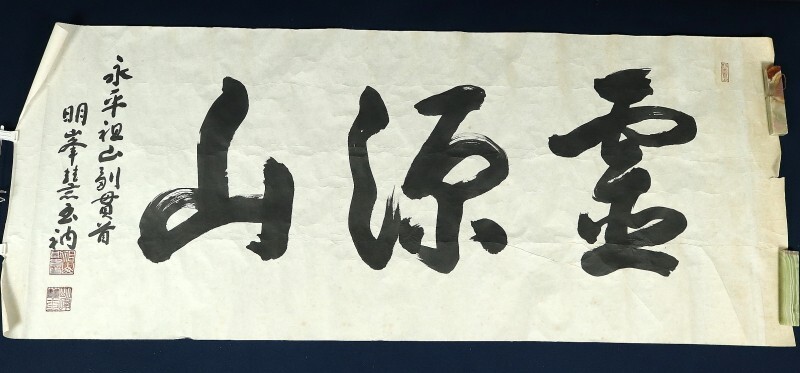 - 10625■【真作】秦慧玉 書「霊源山」 曹洞宗永平寺七十六世 兵庫の人 マクリ