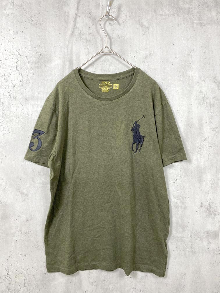 > ゆうパケットOK POLO RALPH LAUREN ポロ ラルフローレン 710712081041 CUSTOM SLIM FIT 半袖 Tシャツ sizeM/カーキ ■■