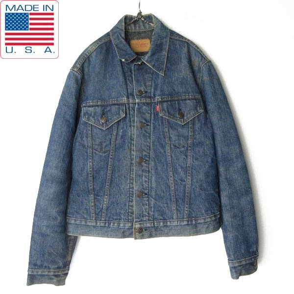 - 70s USA製 リーバイス 70505 ブランケット ライナー デニム ジャケット 46相当 濃いめ ハチノス 縦落ち ビンテージ D152-18-0003ZVW