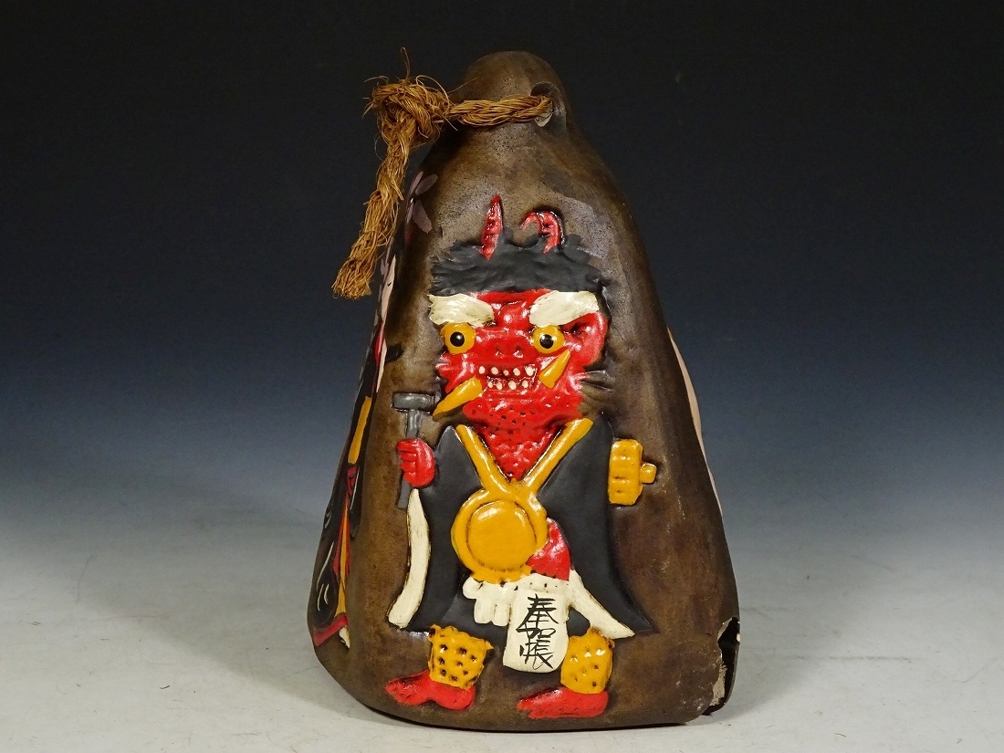 - 6654■大津絵 土鈴 四面 鬼の寒念仏 藤娘 外法と大黒の梯子剃 長刀弁慶 郷土玩具 郷土民芸 お土産