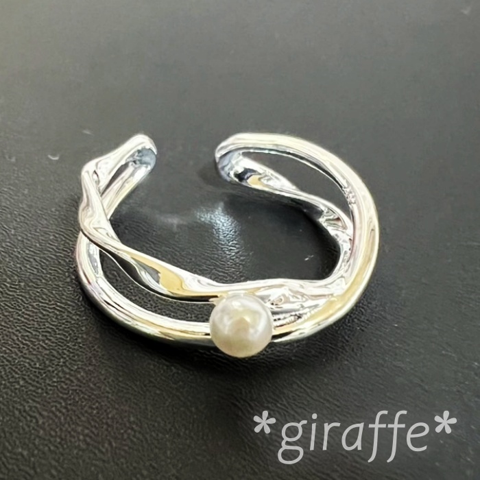 > A564 匿名配送 指輪 レディース パール リング s925 シルバー 交差 クロス 多重 二重 フリーサイズ サイズ調節可能