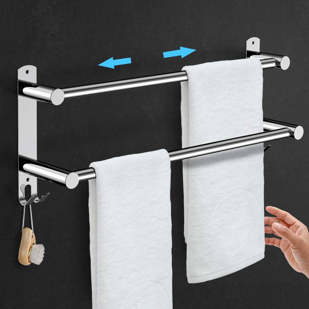 - ☆伸縮可能なタオルバー ステンレス製 防水 高品質 安全設計 操作簡単 3選択可