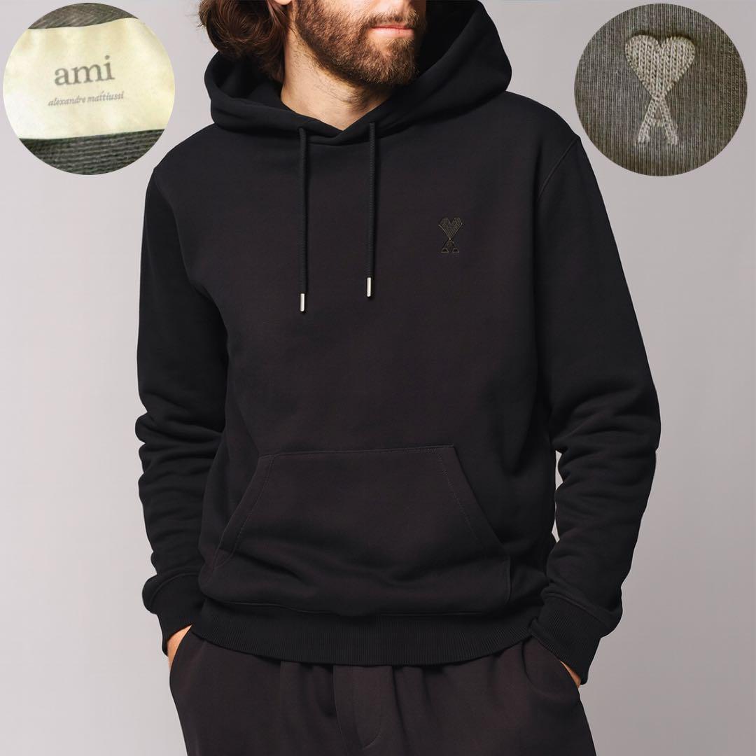 > 人気モデル AMI Paris アミパリス パーカー アミドゥクール刺繍ロゴ フーディ フード プルオーバー スウェット ブラック 黒 ハート