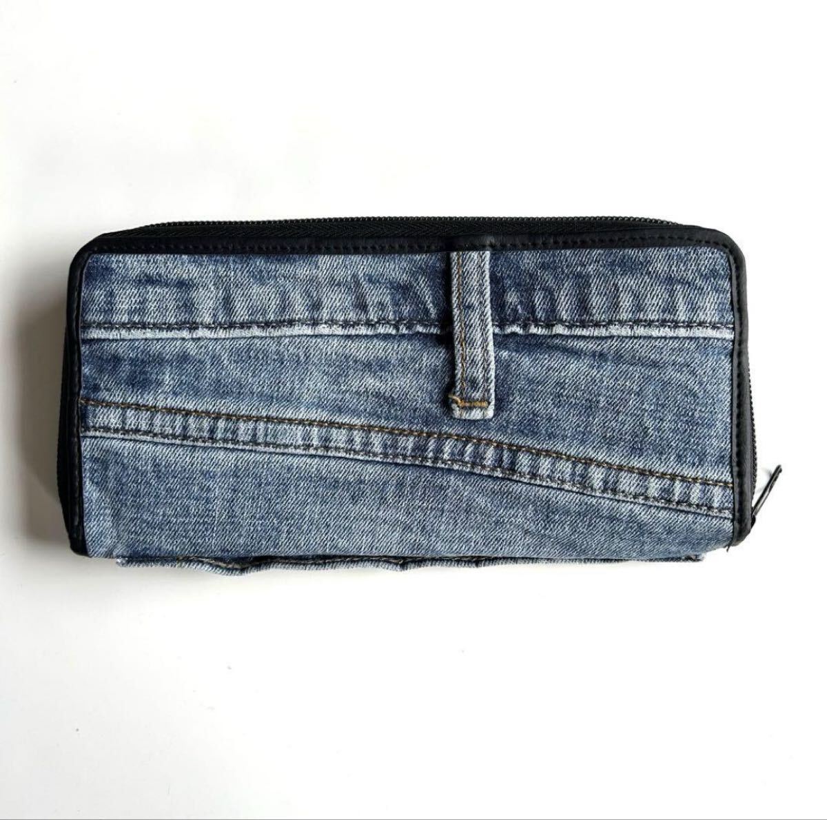 - ★送料無料★新品 デニムリメイク財布 ハンドメイド ロングウォレット ラウンドファスナー 長財布 ユニセックス A