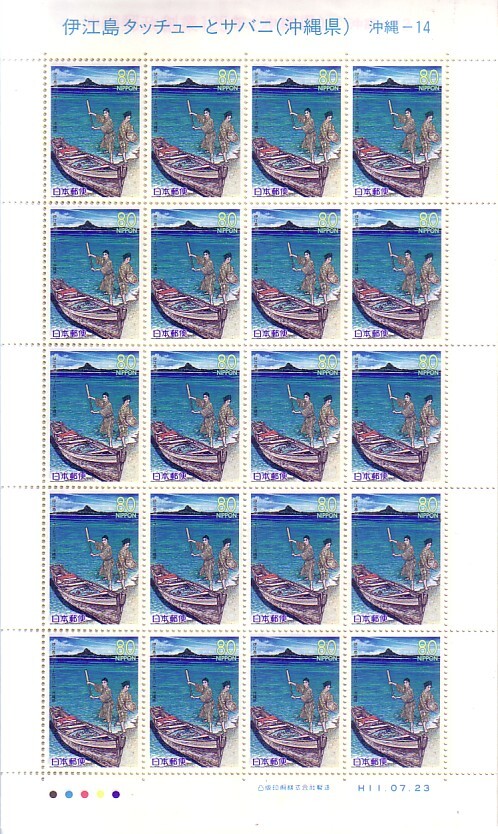 - 「伊江島タッチューとサバニ(沖縄県)」の記念切手です