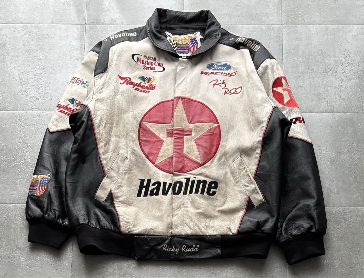 > レア 90s JEFF HAMILTON レザー レーシングジャケット Lサイズ ホワイト 本革 ジェフ・ハミルトン ヴィンテージ