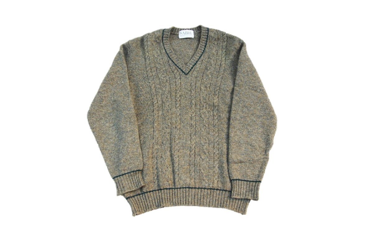 > 80s 90s VINTAGE ヴィンテージ USED 古着 Sabre Wool V-Neck Sweater ウールVネックセーター Cable ケーブル編み England イングランド製 L