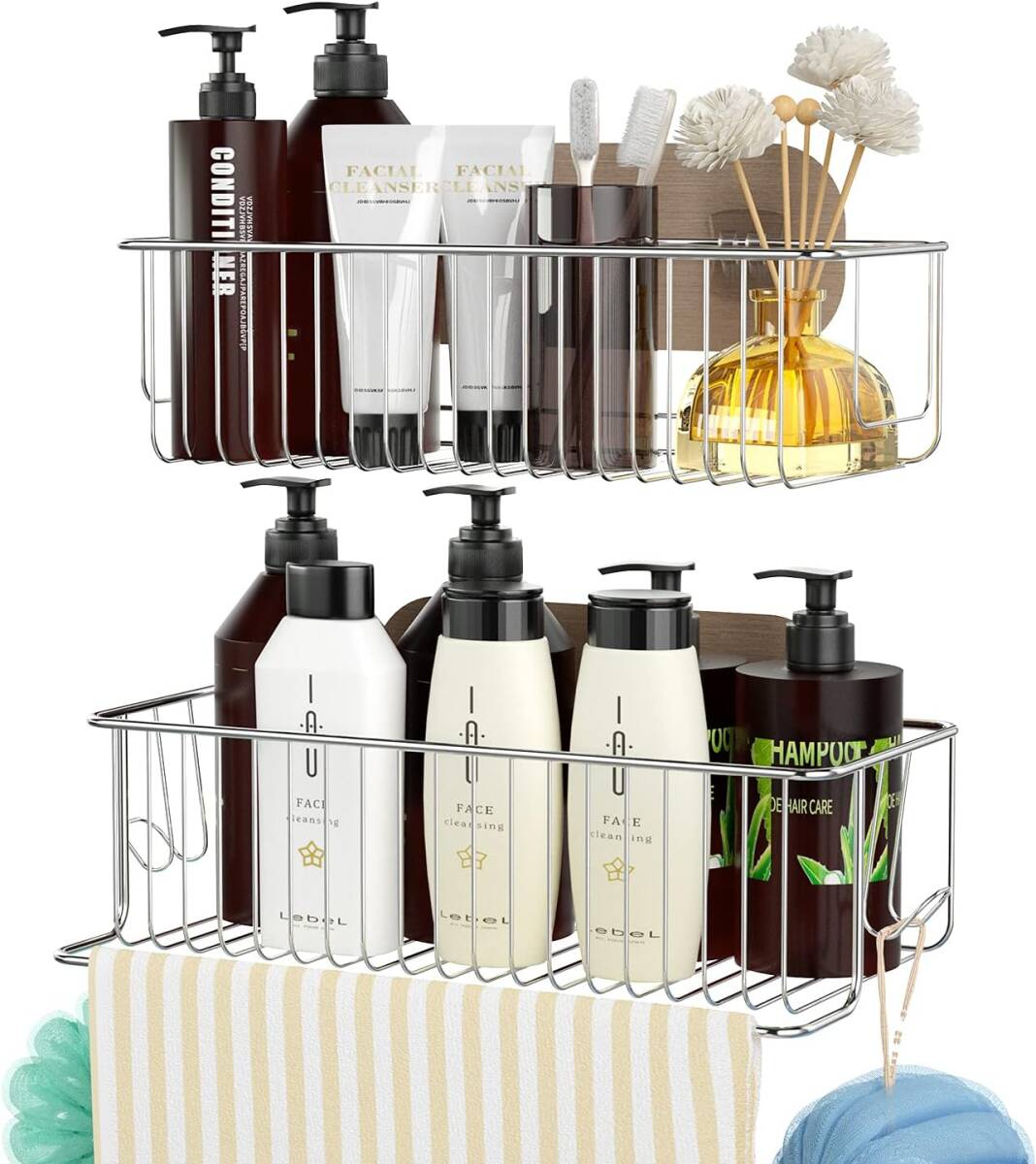 - ファッション 浴室用ラック 2段式 強力粘着固定 シャンプーラック お風呂 キッ