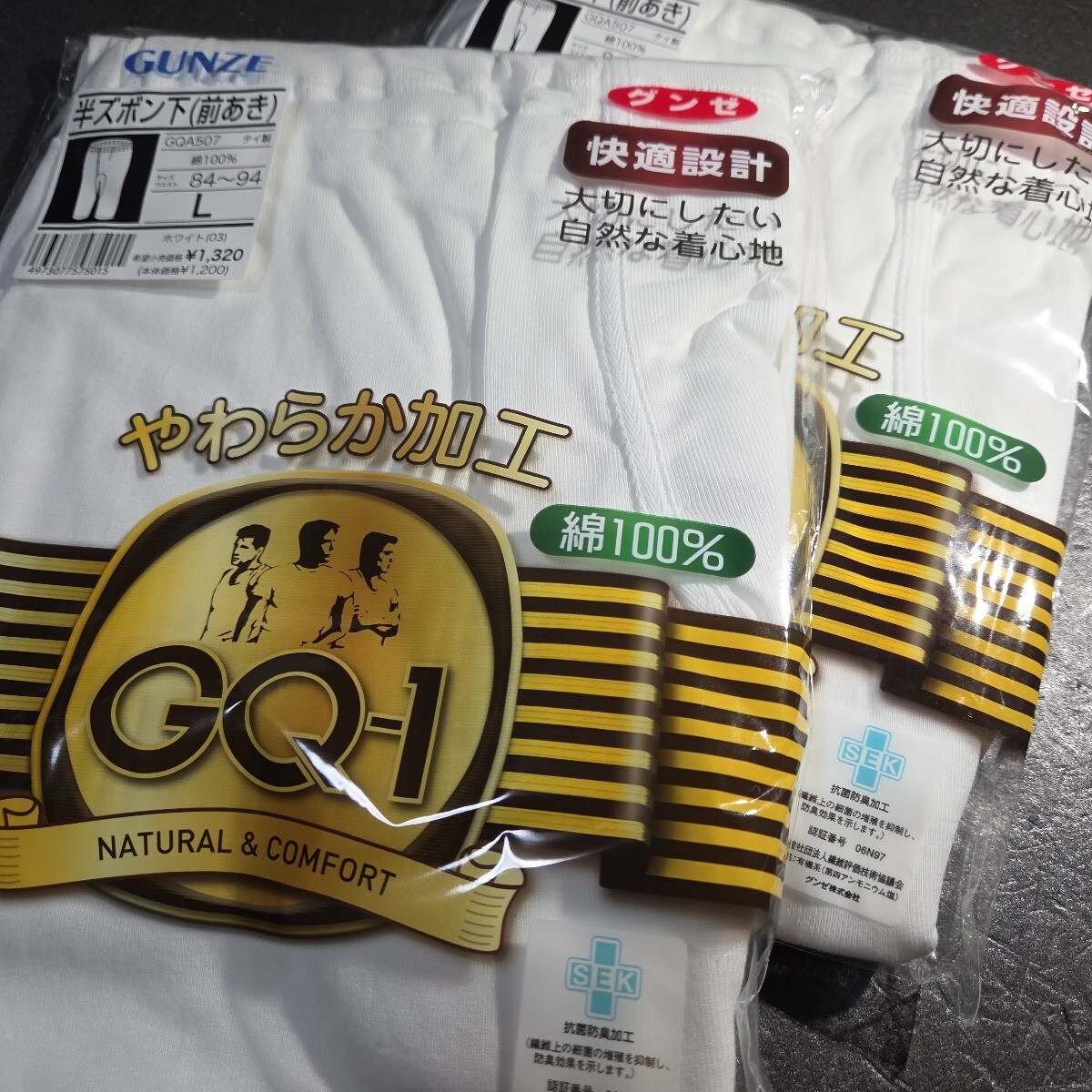 > グンゼ メンズ 半ズボン下 (前あき) L 84~94cm 2枚セット 綿100% GQ-1 快適設計 紳士 男性用 インナー ウェア ホワイト GUNZE / GQA507