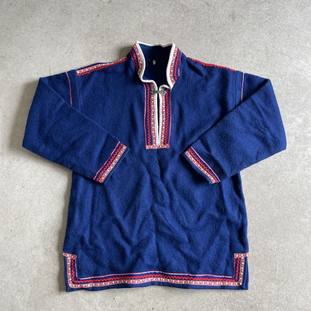 > ビンテージ ビッグサイズ ヨーロッパ古着 チロリアン シャツ 5 ヴィンテージ ユーロ メタルフック ネイビー メンズ XL ニット ジャケット