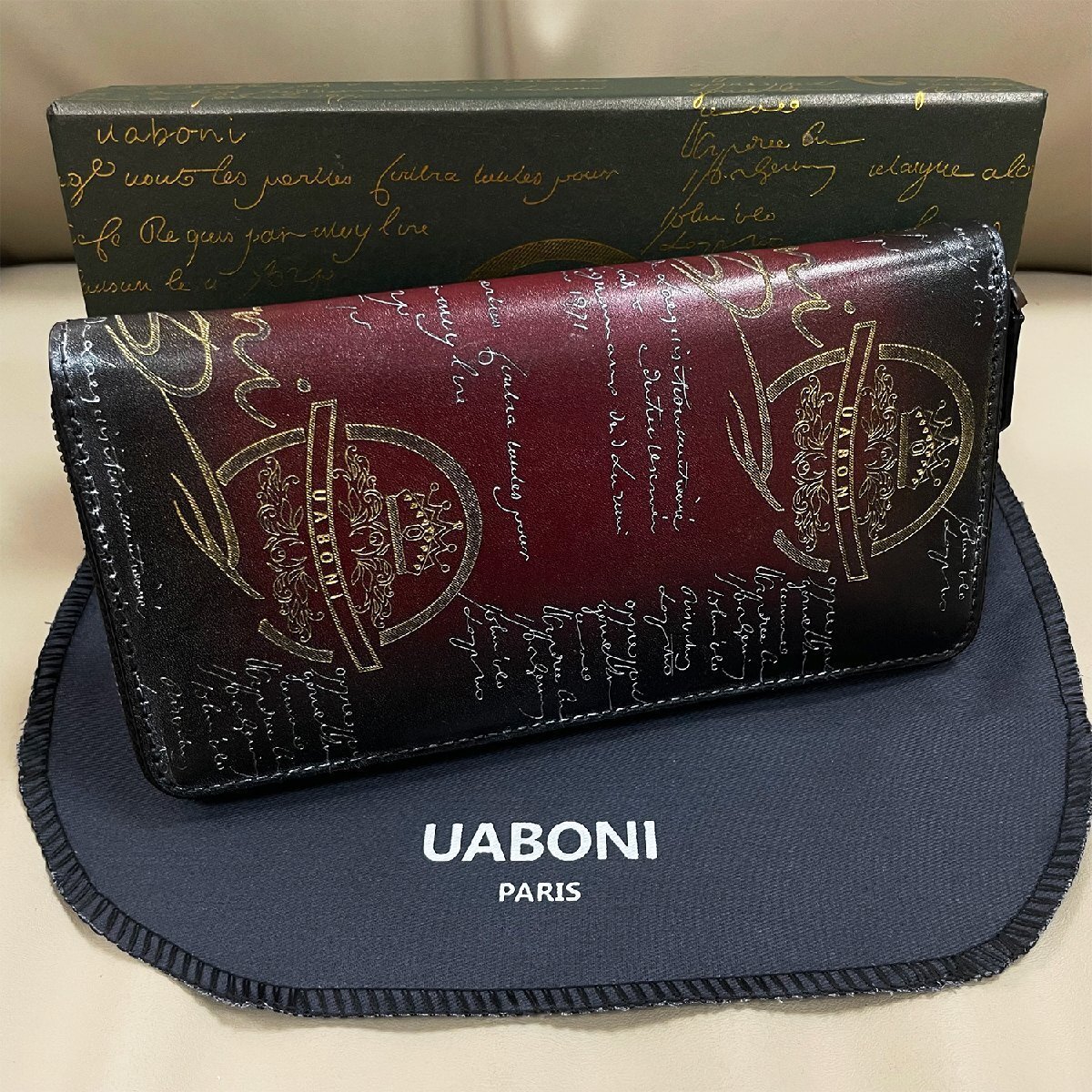 > 特注限定品 定価23万◆UABONI*ユアボニ*幻のパティーヌ*ラウンドファスナー長財布*EU製◆カリグラフィー ゴールデン 手染 カーフスキン絶賛