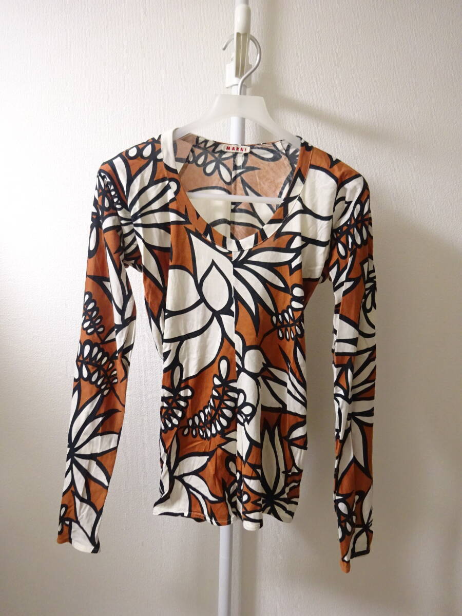 - MARNI 長袖カットソー ボタニカル 茶色 黒 白 レディース 40 マルニ