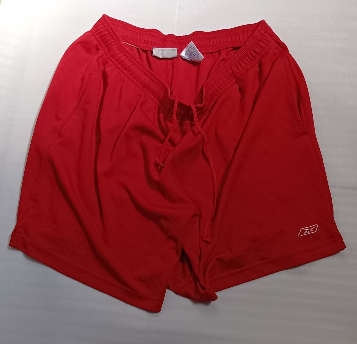 > ☆Reebok.COM サイズL ショート短パンツ半ハーフ赤色レッド紅ズボン刺繍ワンポイント ボトムス スポーツ ファッション ブランド リーボック