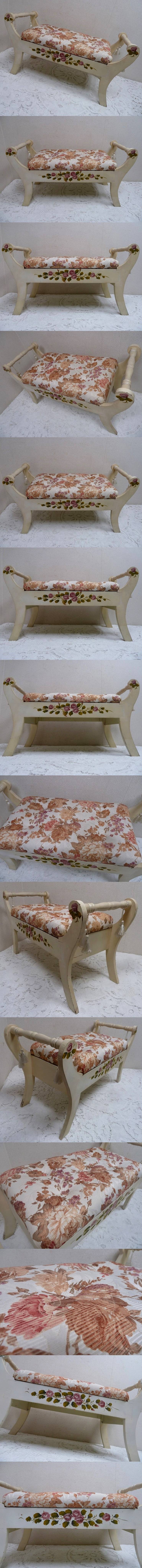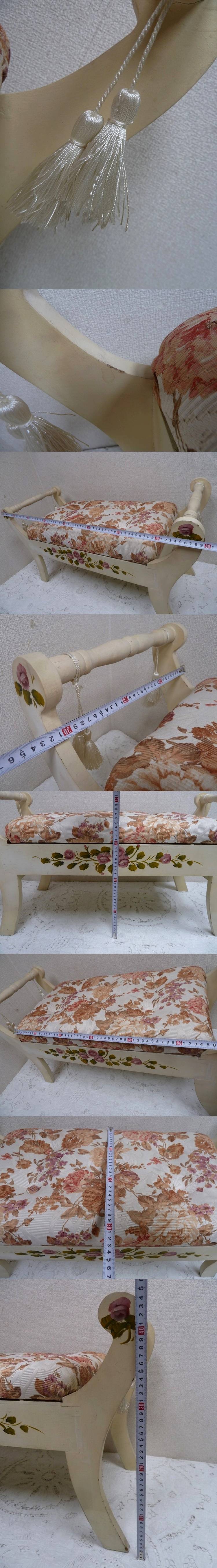 - (☆BM)ロマンティックレトロ/木製 スツール トールペイント 横幅80㎝ ヴィクトリアンレトロ 座椅子 サイドチェア ミニベンチ 花柄