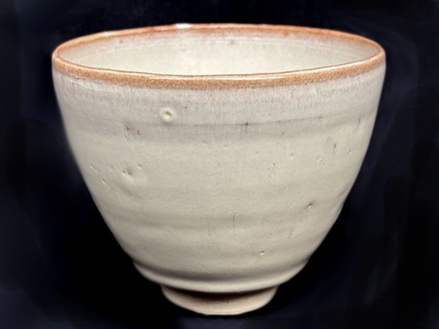 - 茶道具●抹茶碗●銘あり「?」●杉形●白釉