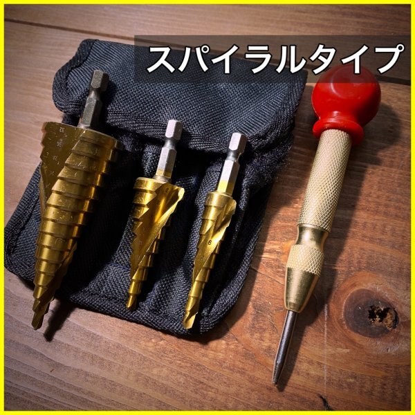 - 112 ステップドリル スパイラルドリル 3本セット タケノコドリル 螺旋 穴あけ インパクトドライバー DIY 六角軸 送料無料