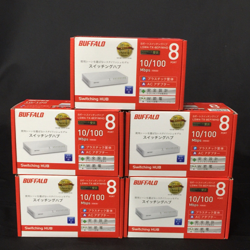 - 新品同様 バッファロー LSW4-TX-8EP/WHD 8ポートスイッチングハブ 10/100Mbps 未開封品 5点セット BUFFALO