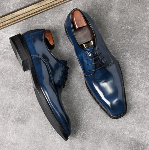- 新入荷お色選択可本革ビジネスシューズ メンズ 職人手作り手塗仕上げ レザーシューズ超希少紳士靴 革靴 牛革 紳士靴 宴会 ブルー 27.0cm