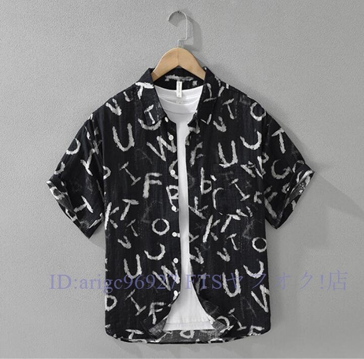- ★新品半袖シャツアロハシャツ海シャツ麻混メンズカジュアルシャツ夏通気トップス黒【M-3XL選択】