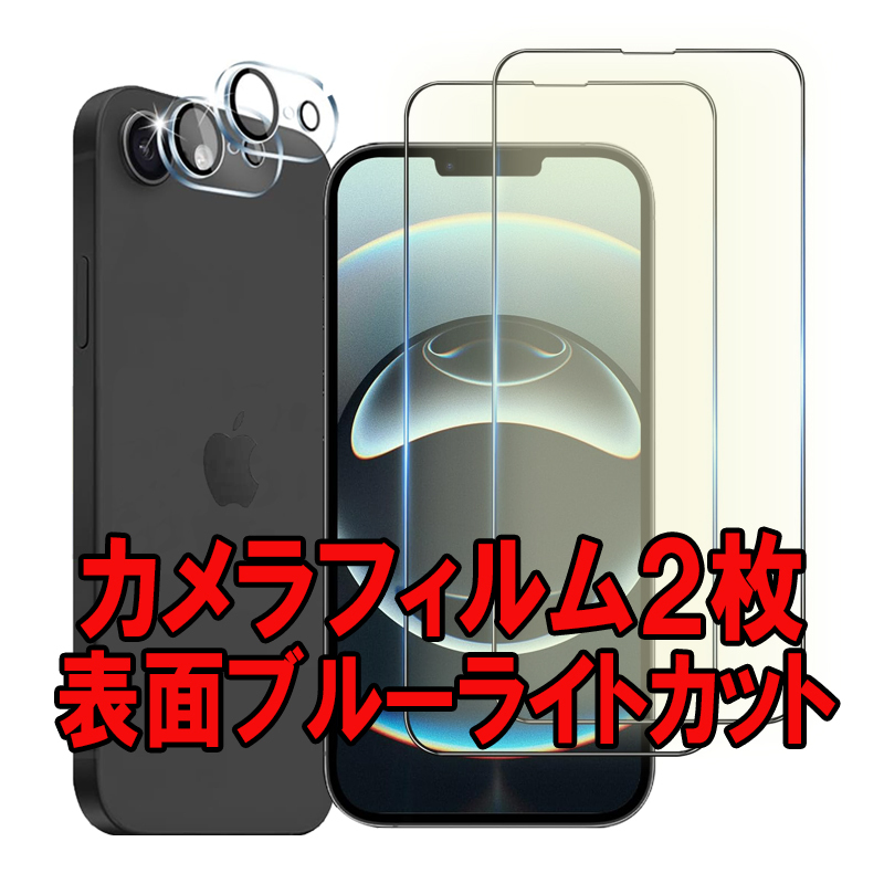 - 2セット=4枚 iPhone 16e ブルーライトカット カメラ ガラス フィルム レンズ アイフォン 保護 シール シート カバー 画面 Glass Film 9H