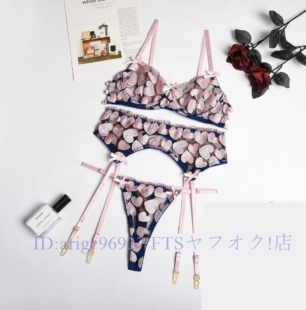 - ★新品愛の花柄 セクシー 3点セット刺繍 レース ガーターランジェリー エロ下着 ベビードール 勝負下着 ナイトウェア S
