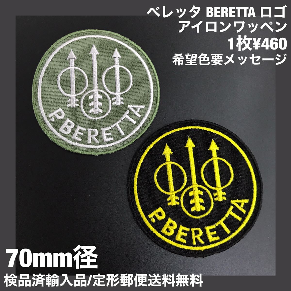- 2色有希望色要メッセージ ベレッタ P・BERETTA ロゴ アイロンワッペン 70mm径 - クレー 銃 狩猟 サバゲー 定形郵便送料無料 sonntagpatches