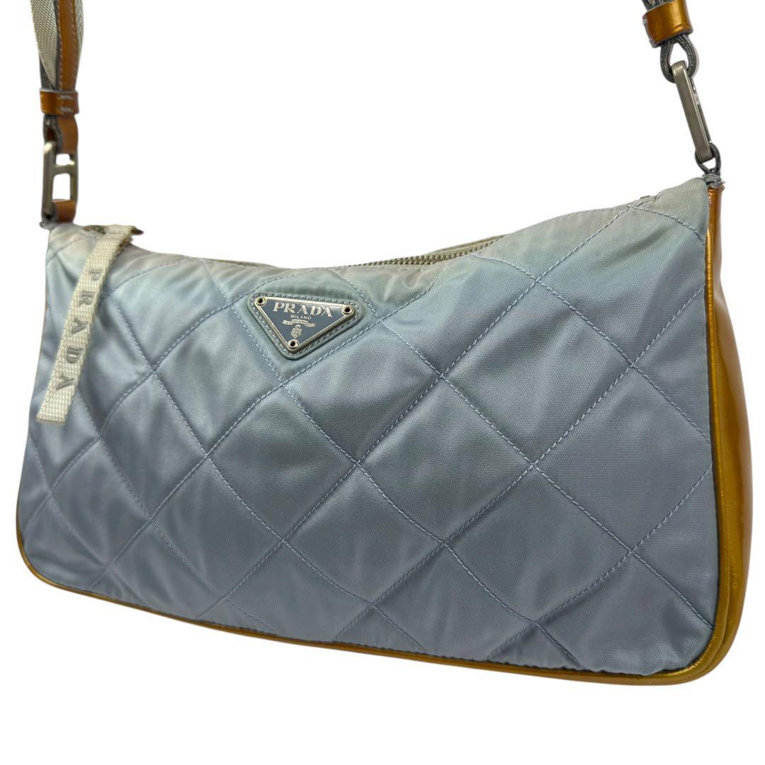 > Archive PRADA Quilted Nylon Shoulder Bag プラダ キルティング ナイロン レザー 三角ロゴ ショルダー バッグ 斜めがけ ライトブルー 水色