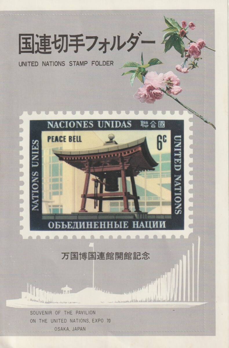- 国連切手フォルダー EXPO’70 大阪万博 国連館記念 Peace Bell メコン開発 4種揃い 未使用