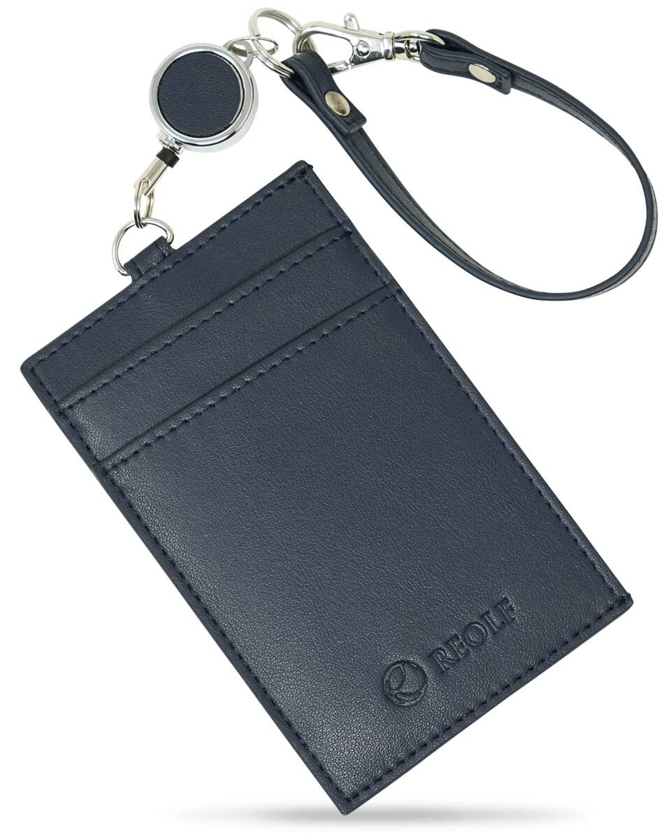 - (Navy) メンズ レディース マイクロファイバーレザー スキミング防止 両面読取り リール付き ICセパレーター内蔵 定期入れ