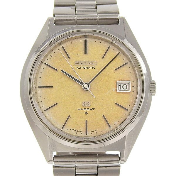 当店の時計は基本的にオーバーホールをしてません。記載の不備や付属の欠品、動作異常につきましてはご注文のキャンセルにて対応いたします。時計の修理や、部品の交換は対応できません。あらかじめご了承ください。 防水性の保証はしておりません。また、購入後の修理につきましては、いかなる理由があっても修理費の負担などは一切いたしません。 | | TY001994 ●ブランド グランドセイコー ●モデル名 ハイビート メダリオン ●性別 メンズ ●ケース素材 SS ●ベルト素材 SS ●風防素材 ガラス ●文字盤色 シルバー文字盤 ●機械タイプ 自動巻き ●Ref.No 5645-7010 ●シリアルNo ― ●ケース幅(リューズ除く) 約 35 mm ●腕周り(最長) 約 16.5 cm ●ラグ幅 約 18 mm ●付属品 なし(本体のみ) ●風防 キズ ●ケース スレ、小キズ、裏蓋メダルに割れや色ハガレ ●ベゼル キズ ●針 若干腐食 ●文字盤 ヤケ、腐食 ●ベルト/ブレスレット スレ、小キズ、ヨゴレ、伸び ●日差(平置き) +70~+111 ●備考※特記事項 クイックチェンジ不可 ●本体ランク C ●ベルトランク B <ご購入時の注意点> 商品以外に付属している袋や箱はランクに含まれておりません。 画像以外の付属品はありません。ハンガーも対象外です。 モニターやカメラの特性上、画像と実物の色が多少異なる可能性がございます。 必ずご入札前に当店のお取引ガイドをご確認ください。 同意の上で入札をお願いいたします。 中古品という事をご理解の上、ご入札をお願いいたします。 営業時間外での入札取り消しは対応できませんのでご注意下さい。 ご落札後に商品の状態についての質問は受け付けておりませんので、気になる事がございましたら必ずご入札前にご質問下さい。 原則として、お客様のご都合による返品、交換はできません。 お客様のご都合によりお取引をキャンセルする場合は、『落札者削除』となります。 ヤフーオークション以外の販売や直接取引等の理由により出品をキャンセルさせて頂く場合がございますので、あらかじめご了承下さい。 新規のご入札の方、マイナス評価が多い方などはこちらから予告無しに削除する場合もありますので予めご了承ください。 (1)落札後に落札通知メールが自動的に送信されます。 (2)落札日を含め5日以内に「購入手続き」を進めてください。 ※商品ページの「取引ナビから購入手続きする」をクリックすれば購入手続きができます。 ※期間内に購入手続きがない場合はキャンセルとなります。 (3)決済確認後、3日以内に商品を発送いたします。発送時に当店からメールをお送りいたします。 落札金額+送料+消費税がお支払い金額になります。 【決済方法】 銀行振り込み・クレジットカード ※領収書、注文明細につきましてはPDF形式の電子領収書でのご提供とります。 決済確認より1~3日以内に発送いたします。休業日は除きます。