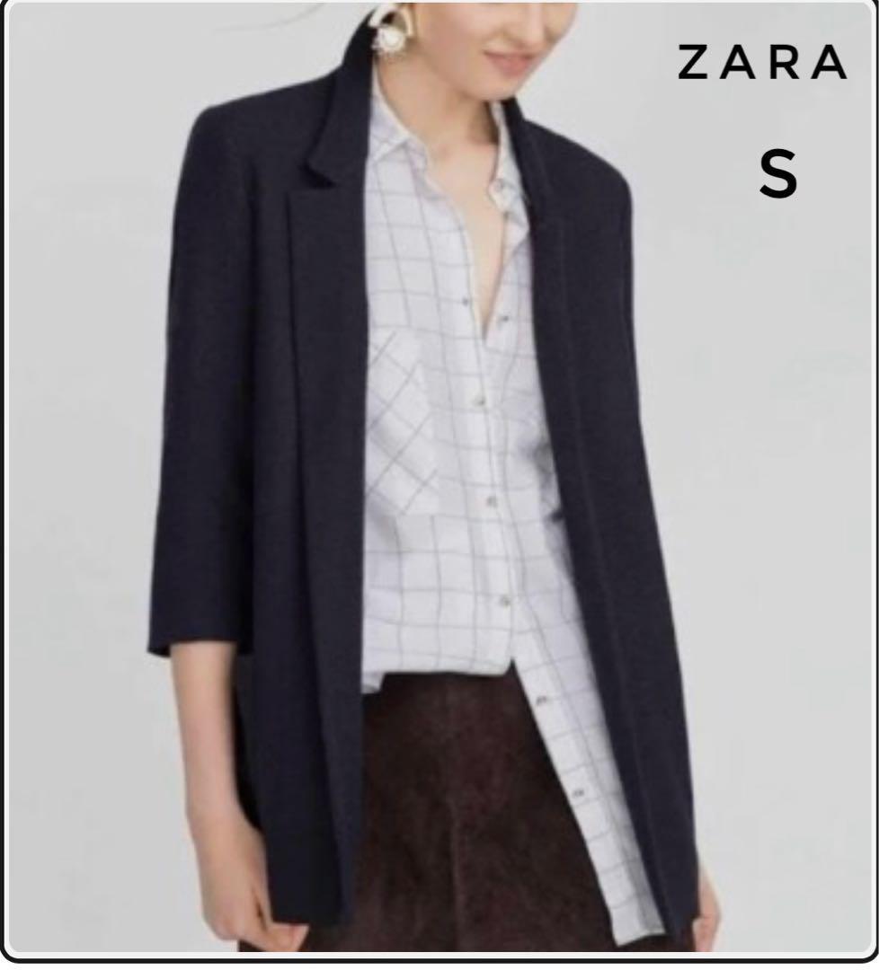 - ZARA BASIC ザラ レディース 七分袖 ジャケット 羽織 オーバーサイズ S ネイビー