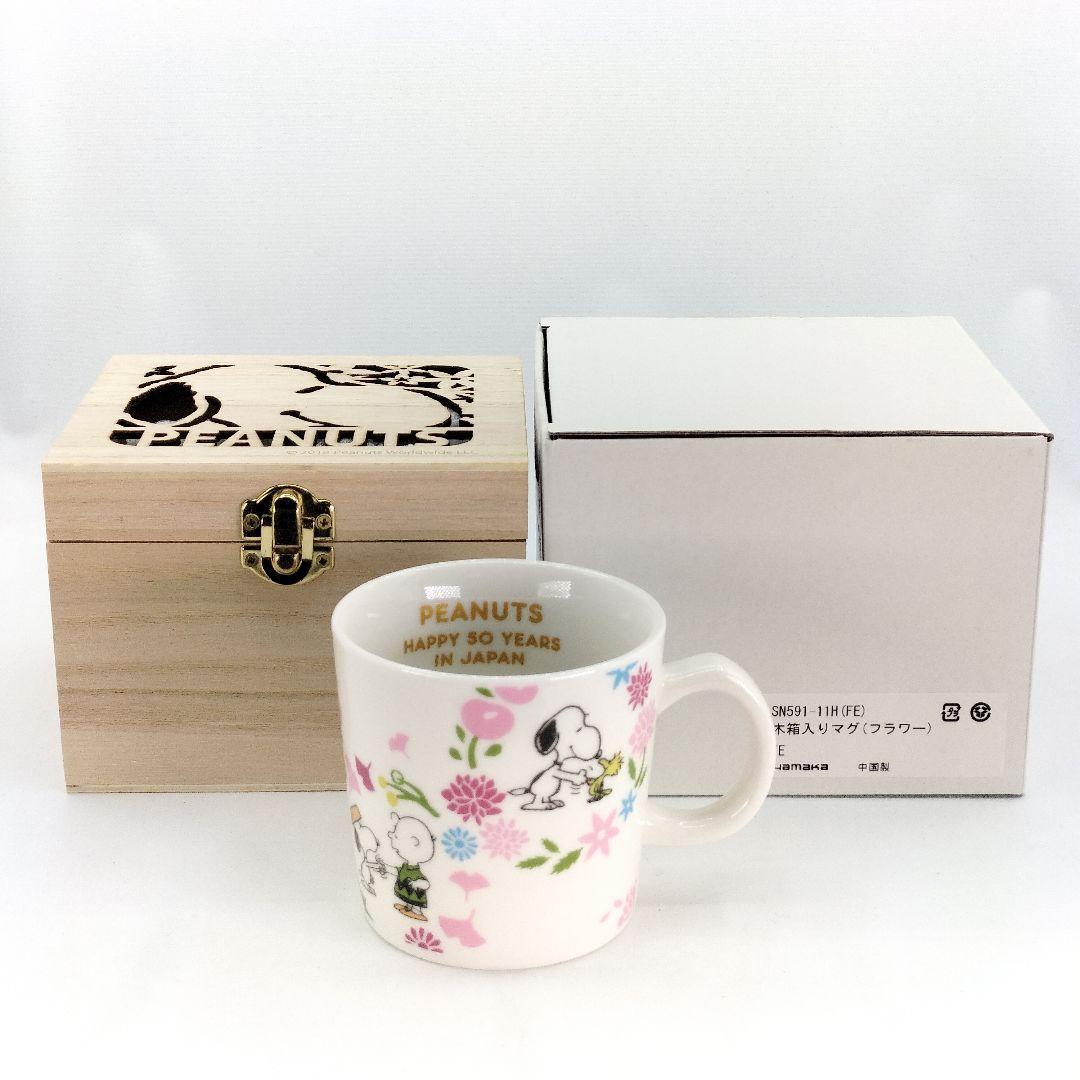 - 未使用 スヌーピー 木箱入り マグカップ フラワー ピーナッツ 50周年