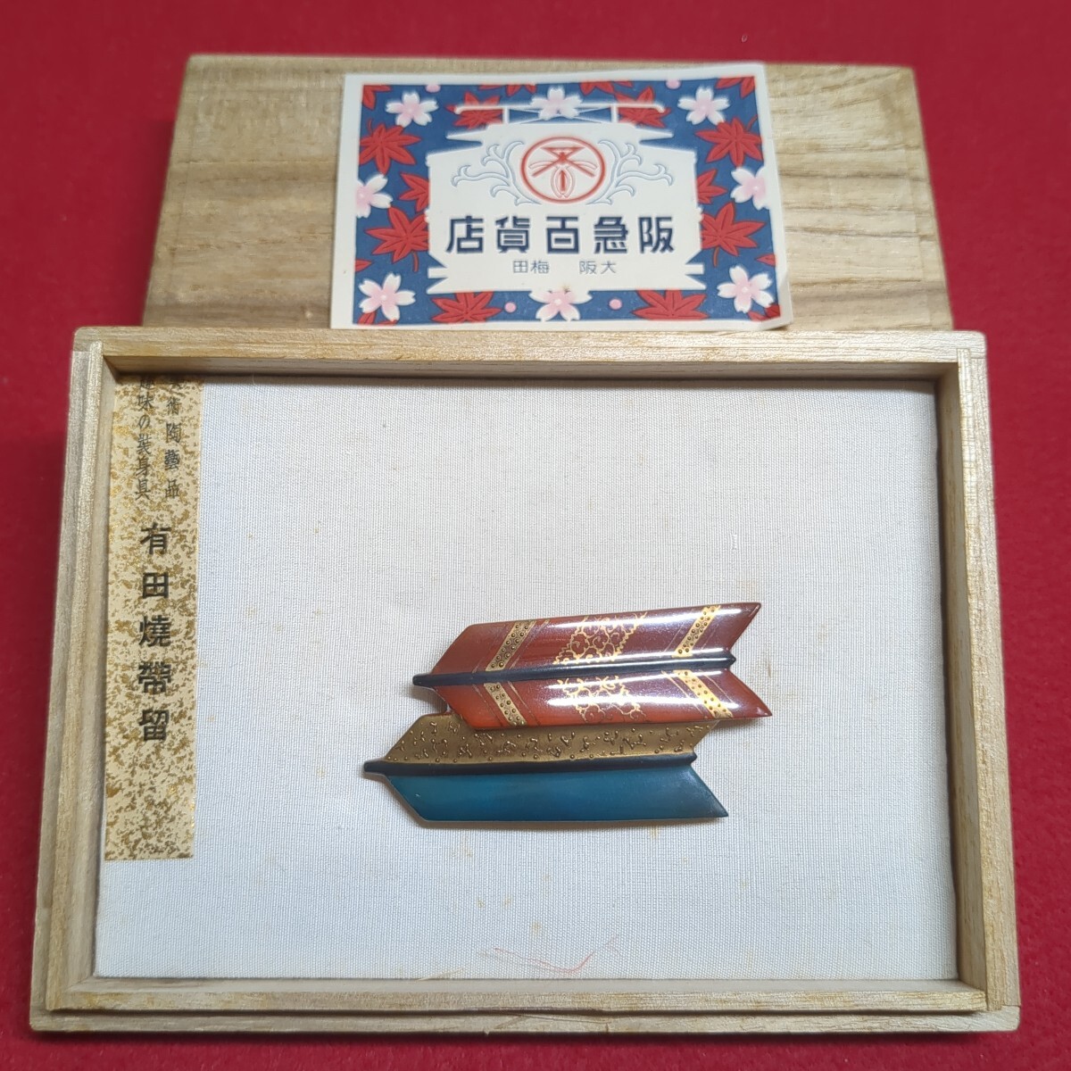 - 帯留 有田焼帯留 銘有り 矢羽根 陶器 当時物 着物 帯留め 有田焼 金彩 アンティーク