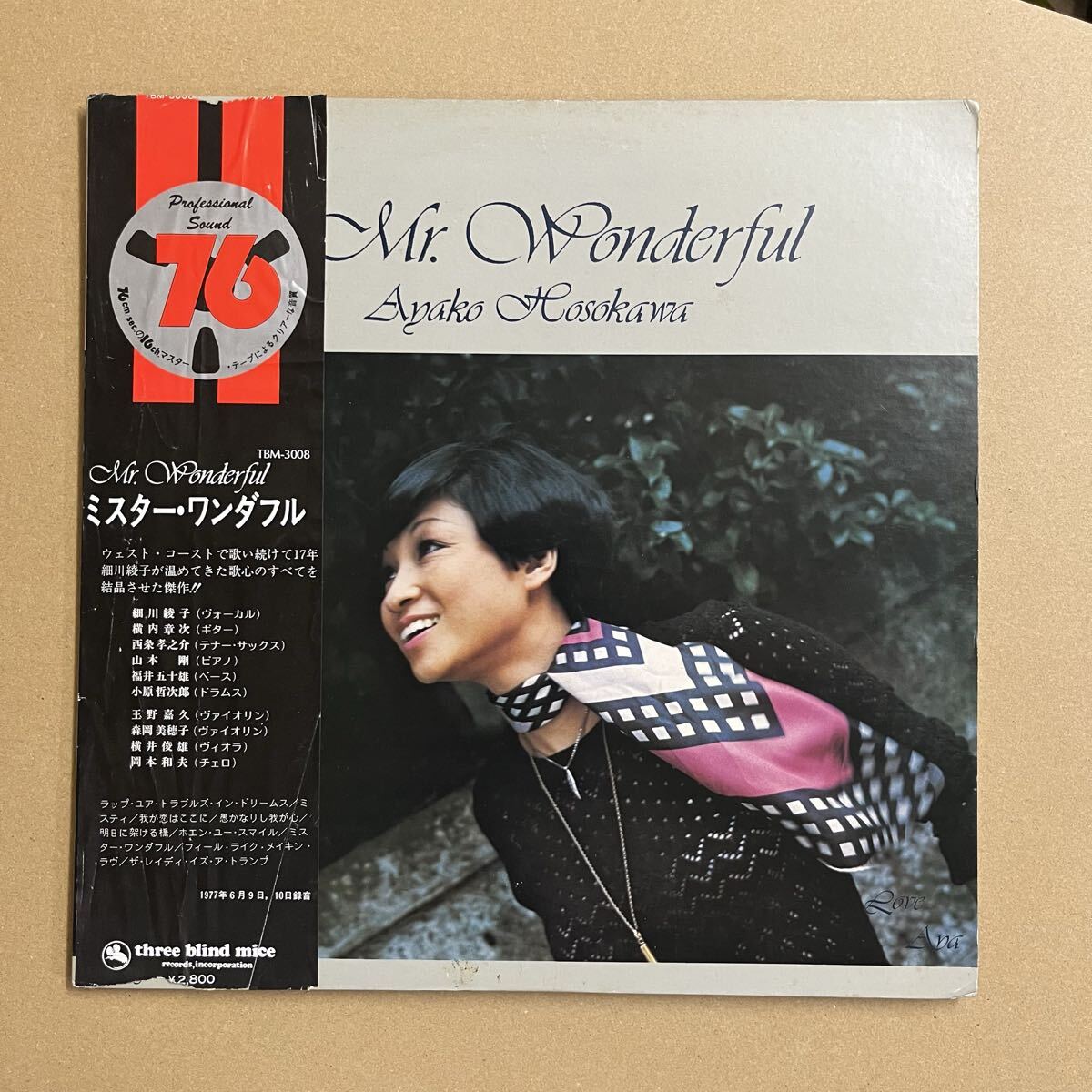 > 美盤 / オリジナル / ハガキ付き / 細川綾子/ミスター・ワンダフル(TBM3008) AYAKO HOSOKAWA MR.WONDERFUL / ORIGINAL / three blind mice