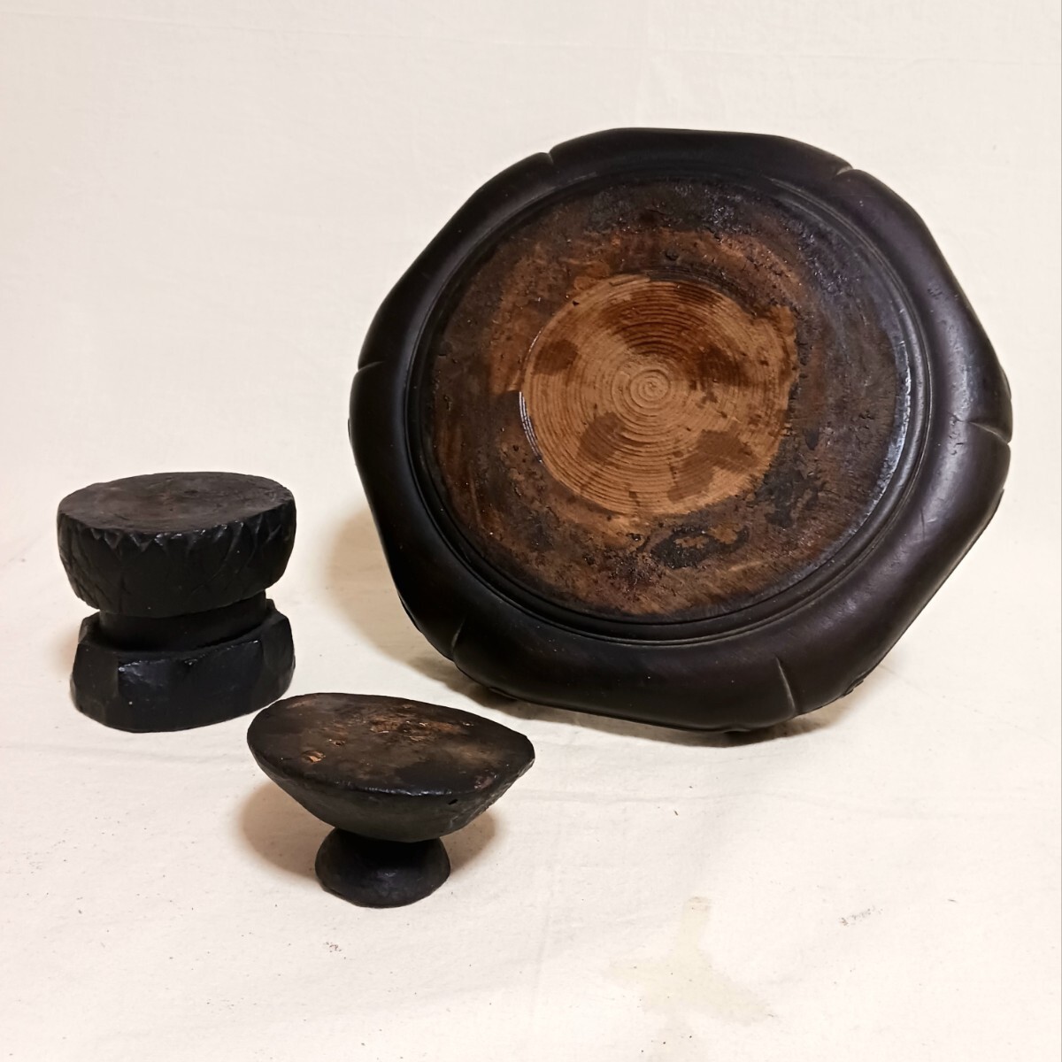 - 時代 仏像台 3点まとめて 仏教美術 木彫 骨董 古美術 古道具