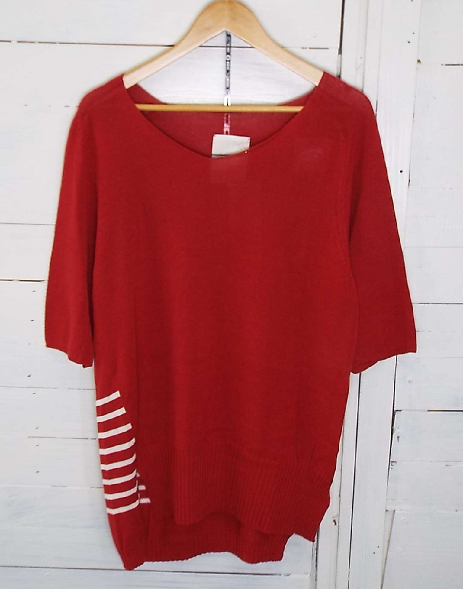 - T3056〇VOO(ヴォー)半袖 Tシャツ ニット カットソー レッド サイズ2 品質タグなし SAMPLE/サンプル品