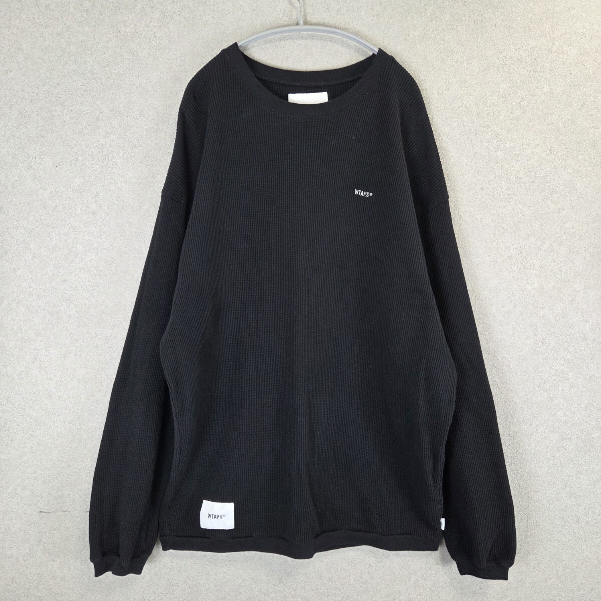 > 美品 20SS WTAPS WAFFLE LS/TEE.COTTON ダブルタップス ワッフル サーマル ハニカム ロンT 長袖 Tシャツ ロゴ 刺繍 リブ size 2 M ブラック