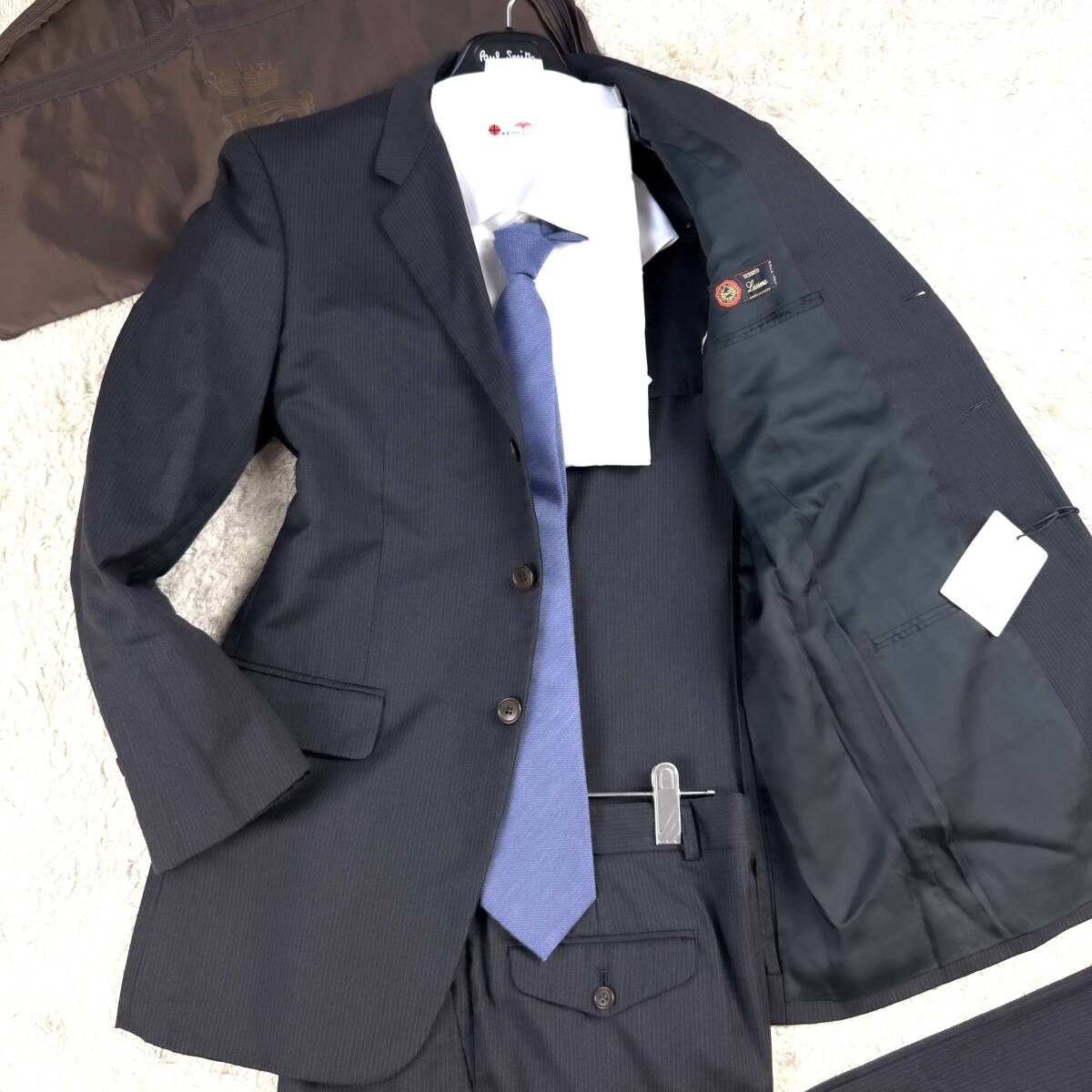 > 極美品コラボPaul Smith London×LessonaセットアップスーツXL.LL~L黒ブラック2ピース ストライプ柄大きいサイズ ポールスミス レッソーナ