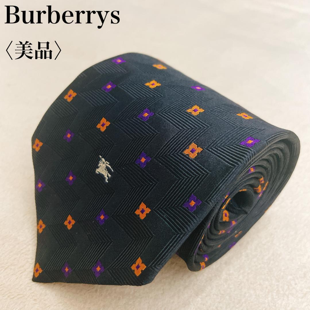 > 【美品】Burberrys バーバリー ネクタイ シルク100% 小紋 日本製 ロゴ 刺繍 クラシック 希少 ヴィンテージ スーツ ビジネス 高級感 4-23