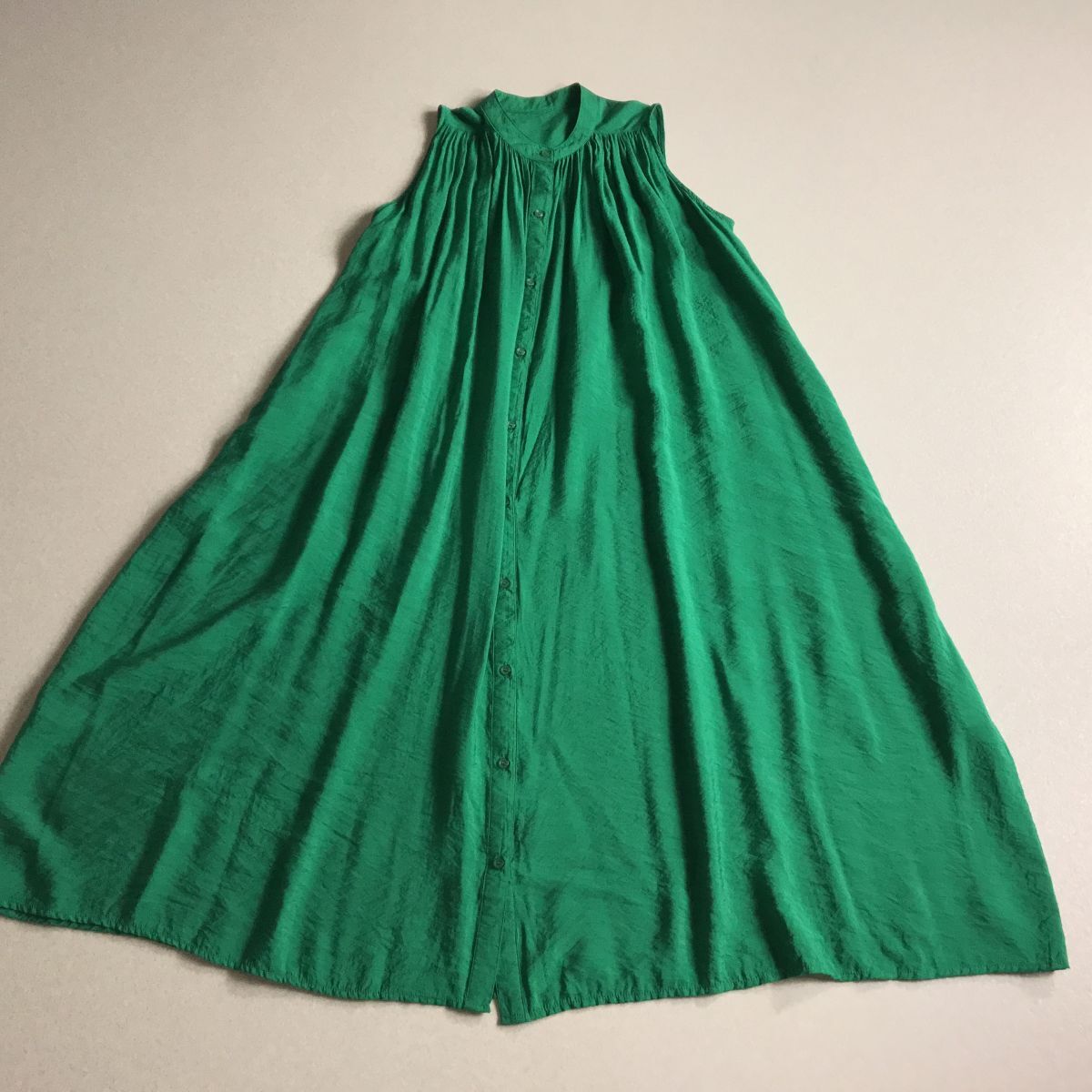 - ☆ バンドカラー ギャザー ノースリーブ ワンピース グリーン