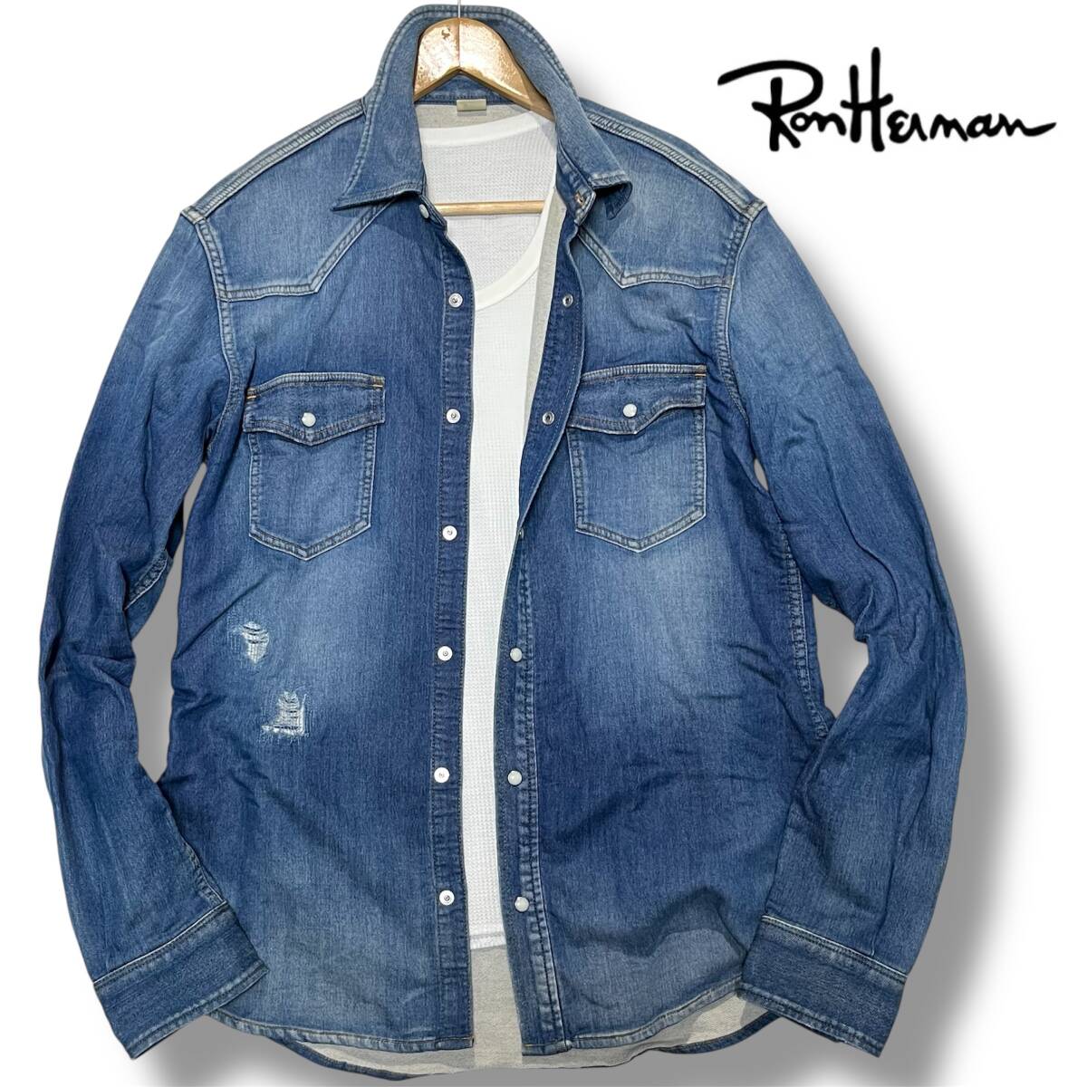 > 1円〜 (L) Ron Herman ロンハーマン リペア加工 スウェット ジョグデニム デニムシャツ