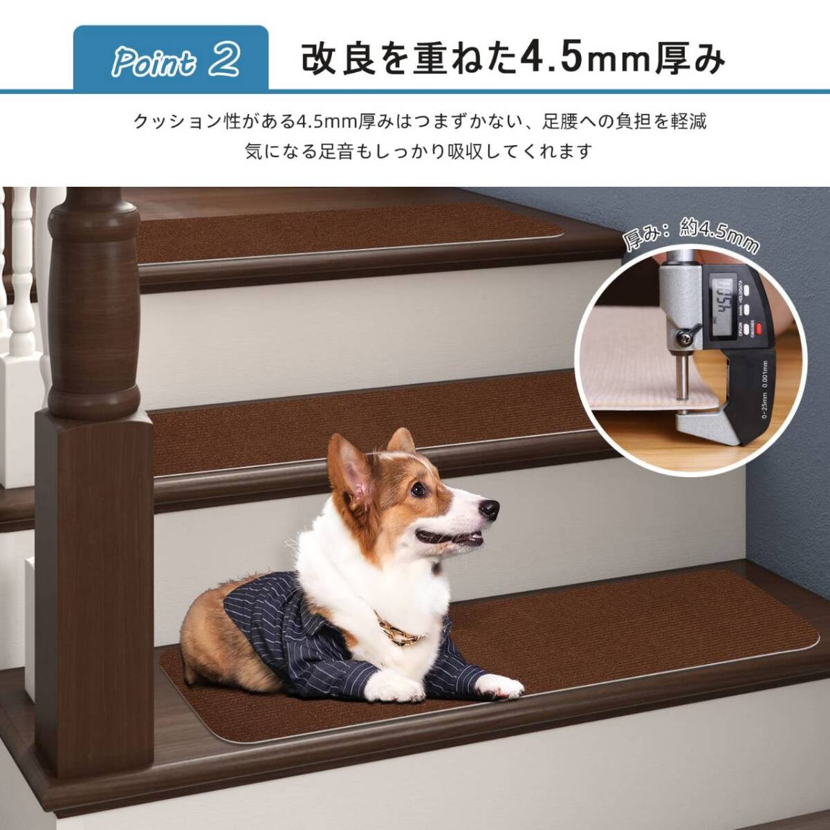 - 滑り止め効果抜群の洗える15枚入り階段マット