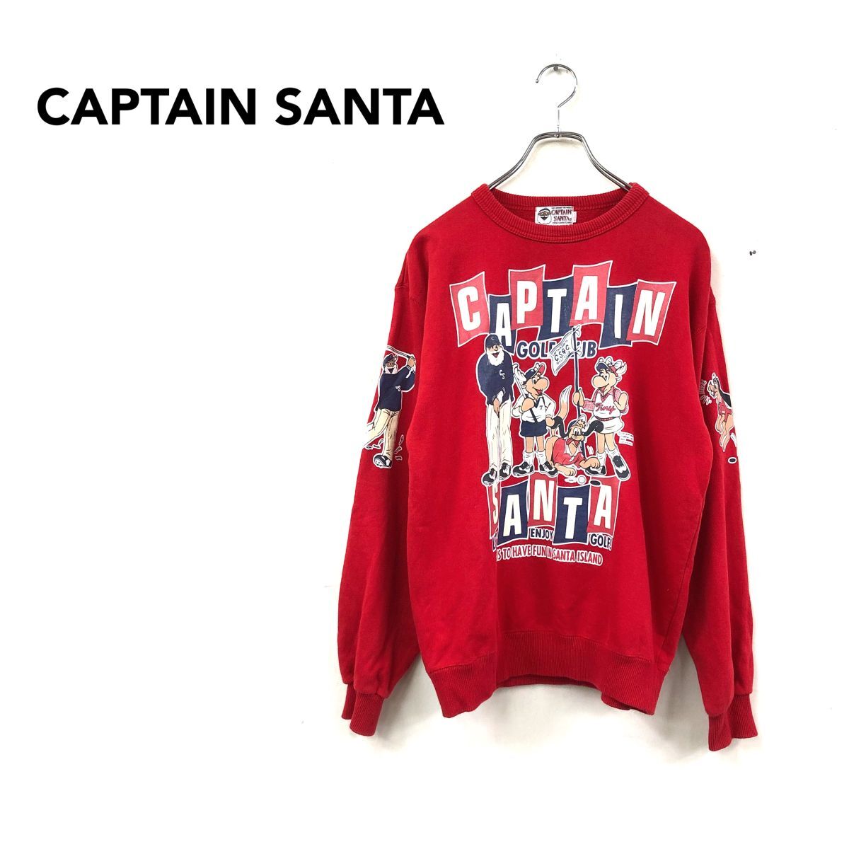 > 2K2589-G◆ CAPTAIN SANTA キャプテンサンタ プリントスウェットシャツ キャラクター ロゴ トレーナー リブ クルーネック ◆ sizeM 赤 綿