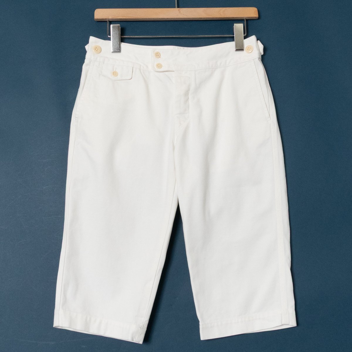 > RALPH LAUREN ラルフローレン ハーフパンツ サイドボタン ホワイト系 ボタンフライ 大人カジュアル コットン100% 綿 64-91/9 レディース