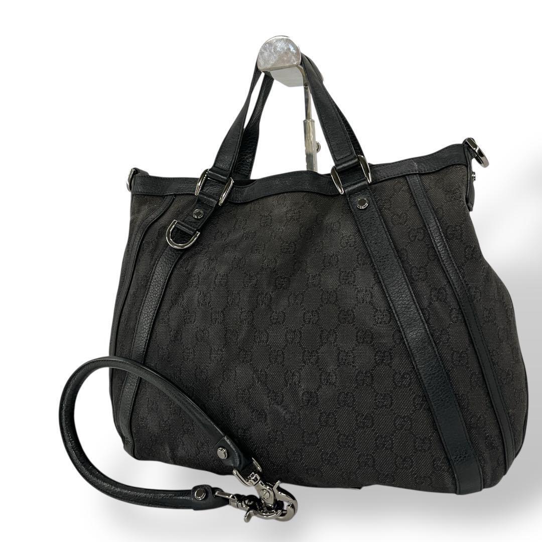 - GUCCI グッチ アビー 2way ハンドバッグ ワンショルダーバッグ GGキャンバス 黒 大容量 トートバッグ GG柄 ブラック